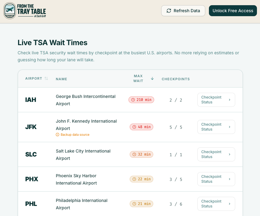 If you’re traveling, get to the airport early — and share my free live TSA wait-time tracker with anyone else who is flying.