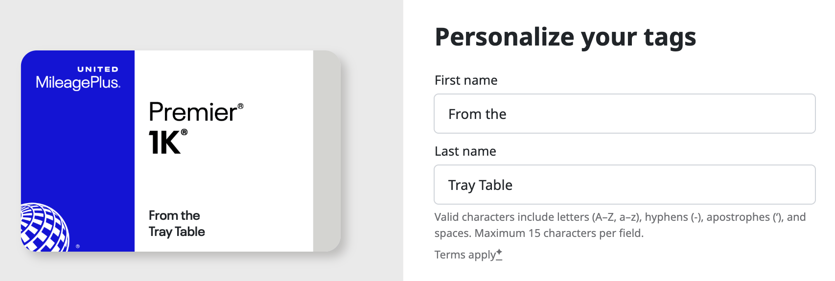 United just launched the ability to personalize your luggage tag with whatever name you’d like. I was thinking of ordering mine with either “From the Tray Table” or “if lost, find zachgriff on IG” written on it.
